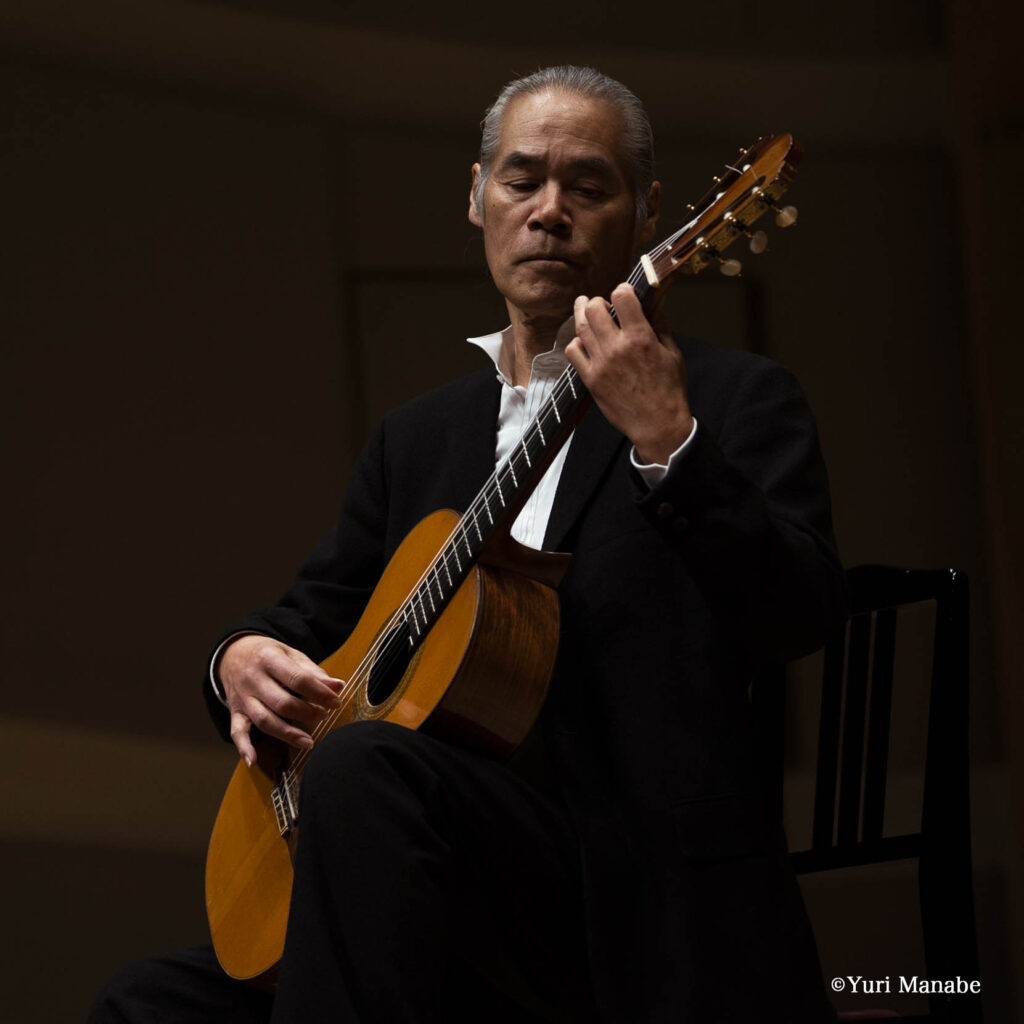 9歳よりギターを始める。1963年に巨匠イエペスに認められ、翌年スペインで師事。69年の日本デビューで、「テクニック、音楽性ともに第一人者」との高い評価を得た。71年には北米で28に及ぶ公演を行い、国際的評価を不動のものにした。74年にはNHK教育テレビ「ギターを弾こう」に、2007年にもNHK教育テレビ「趣味悠々」にそれぞれギター講師として登場し、日本ギター界の第一人者としての存在を強く印象づけた。08年ビルバオ交響楽団の定期演奏会に出演。同団とは《アランフェス協奏曲》を録音、09年にCDをリリースした。15年にはイ・ムジチ合奏団と共演、録音も行った。