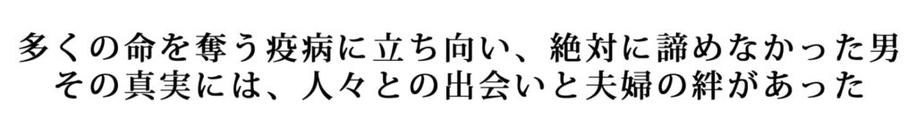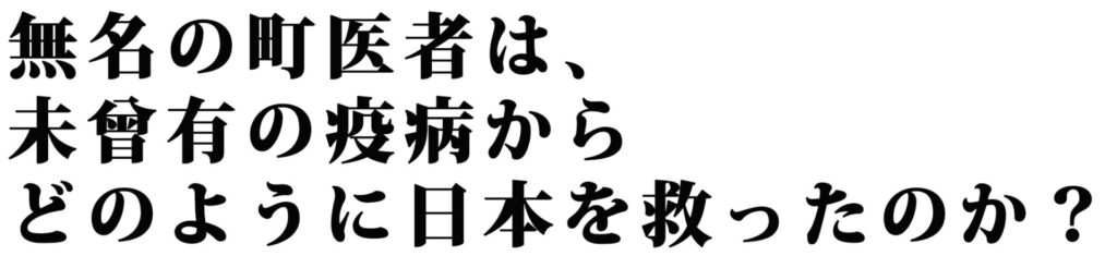 江戸時代末期。死に至る病として恐れられていた疱瘡が猛威を振るい、多くの命を奪っていた。その疫病に立ち向かい、絶対に諦めなかった男・笠原良策。この無名の町医者は、どのように日本を救ったのか?その真実には、人々との出会いと夫婦の絆があった―。世代を超えて今を生きる、勇気と希望を与えてくれる愛と感動の実話!