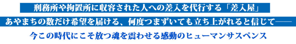 刑務官、弁護士、検察官が主人公の映画やドラマは今まで数多くあるが、「差入屋」という職業が主人公の作品はほとんどない。