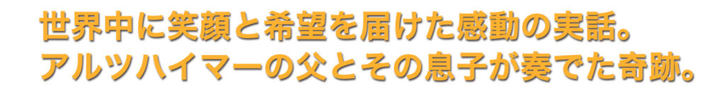 ドライブの車中で楽しそうに歌う父と息子。助手席に座り、抜群の歌唱力で伸びやかに歌い上げる父テッド・マクダーモットは、アルツハイマー型認知症を患っている。この動画は同じ境遇にある世界中の家族に感動と希望を与え、再生回数は6000万回以上を記録。さらにこれがきっかけとなり、父テッドは80歳にしてCDデビューを果たし、イギリス最高齢の新人歌手となった。