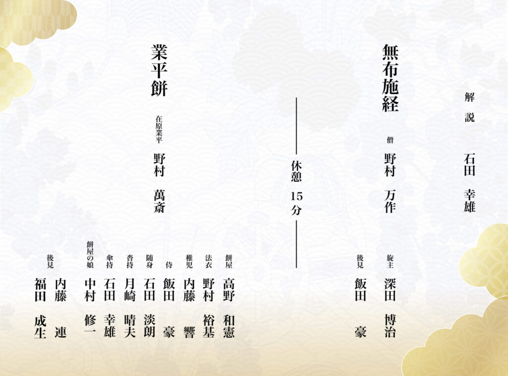 ・やむを得ない事情により、出演者・演目が変更になる場合がございます。予めご了承ください。